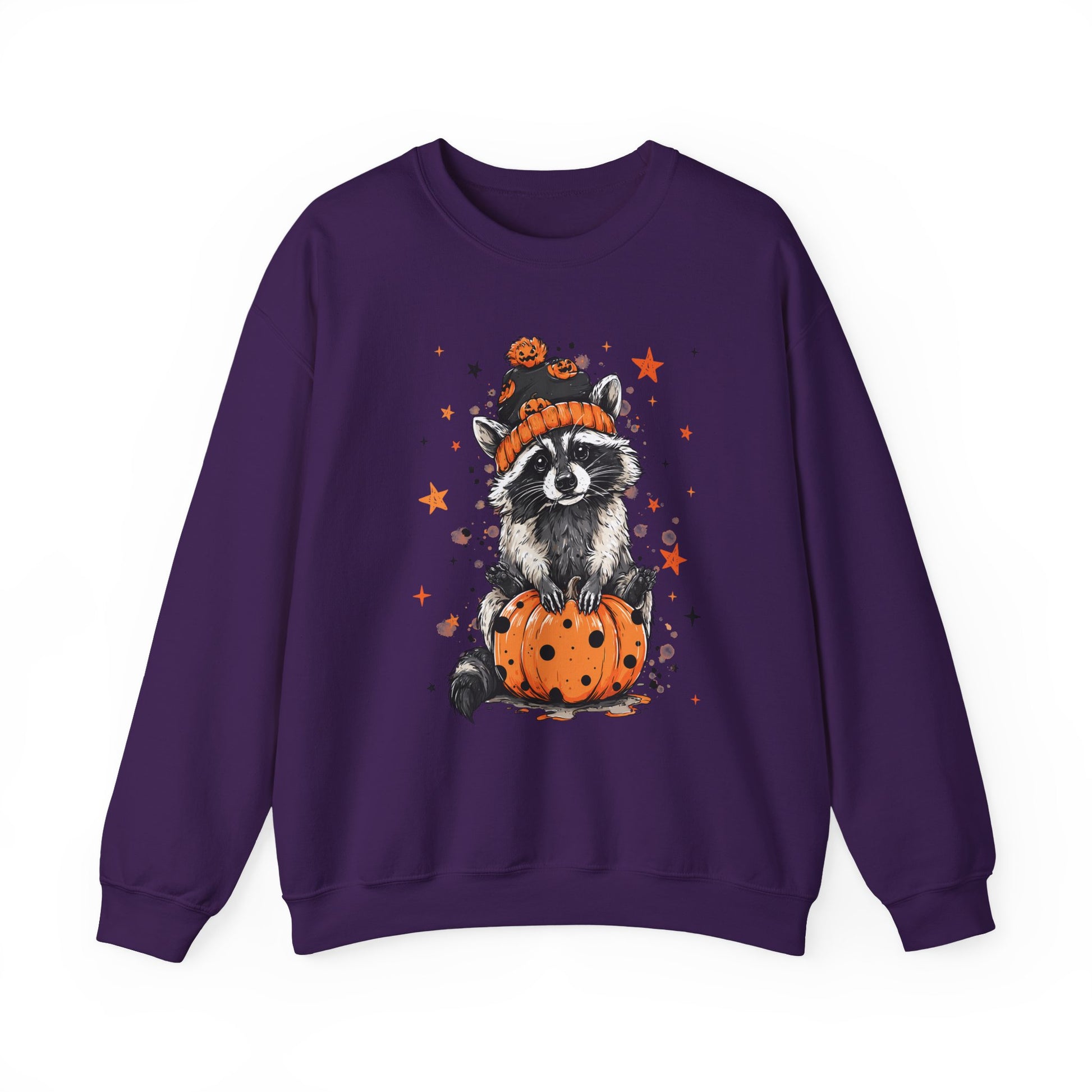 *Cozy Halloween Raccoon Sweatshirt | Unisex Fall Apparel, Gifts for Animal Lovers, Pumpkin Design, Casual Wear, Halloween Celebration